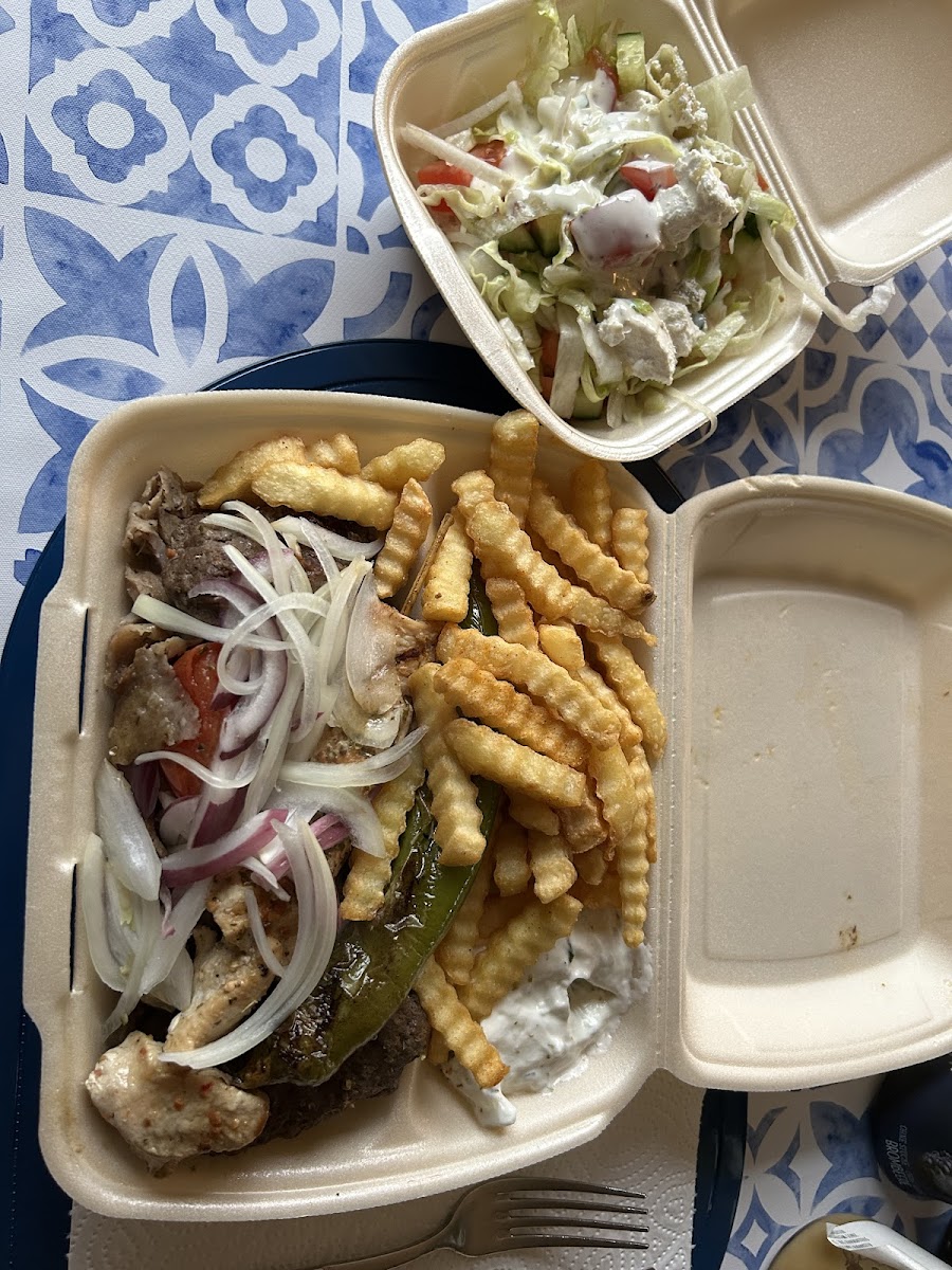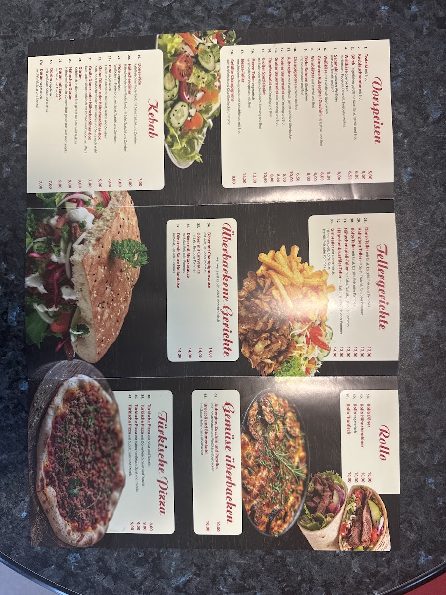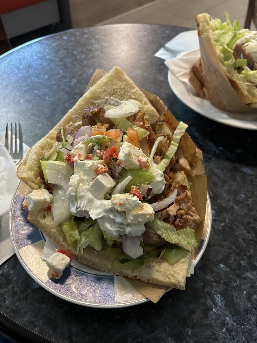 Sehr leckeres Essen, meistens nehme ich Döner mit Cocktailsoße und dazu noch Feta mit Peperoni und der Preis bleibt bei 7€ was auch völlig in Ordnung ist. Man wird ja auch satt davon. Sehr zu empfehlen. Personal ist auch sehr nett und für die Kinder gibt's hier auch noch Spielgeräte draußen. Eis ist auch der Hammer, also durchweg zufrieden