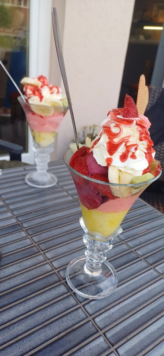 Wir hatten gesehen das die Eisdiele jetzt auch Döner hat und haben es gleich mal ausprobiert. Das Personal ist sehr freundlich ( ein bisschen chaotisch aber das spielt sich noch ein ). Wir haben ein Hähnchen Rollo bestellt. Es hat ein wenig gedauert aber es waren auch drei Kunden vor uns dran. Es gab auch noch dazu einen Salat mit extra Dressing , haben wir garnicht mit gerechnet . Zu Hause angekommen war der Rollo immer noch warm. Ein riesiger Rollo guckte uns an als wir den Karton geöffnet hatten . Er war sehr lecker aber meine Frau hat den Rollo nur zur Hälfte geschafft Wir werden auf jeden Fall wieder kommen